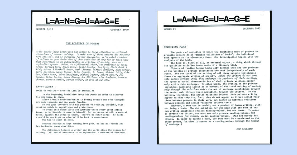 ১৯৬০ দশকৰ শেষৰ ফালে আৰু ’৭০ দশকৰ আৰম্ভণিতে আমেৰিকাত এক অভিনৱ কাব্য আন্দোলন হিচাপে ভা=ষা কবিতাই আত্মপ্ৰকাশ কৰিছিল৷ ই পোনেই আমেৰিকাৰ মূল সুঁতিৰ কাব্য পৰম্পৰাক প্ৰত্যাহ্বান জনাইছিল আৰু তদানীন্তন কাব্য ধাৰণা তথা কাব্য দৰ্শনলৈ আমূল পৰিৱৰ্তন আনিছিল৷ পৰম্পৰাগত কাব্য শৈলীৰ বিপৰীতে সেই কালছোৱাত কিছুমান নতুন আংগিক আৰু দৰ্শনৰ কবিতা ৰচনা কৰা হৈছিল যিবোৰ হিলছ (Hills); ডিছ (This); ট’টেলছ (Tottels); লে=ঙ=গু=ৱে=জ (L=A=N=G=U=A=G=E); ট্যাম্বা প্ৰেছ (Tuumba Press) ইত্যাদি পত্ৰিকা আৰু আলোচনীত বহুলভাৱে প্ৰচাৰ হৈছিল৷ ভাষা কবিতা আন্দোলনটোক সেই কালত ছানফ্ৰান্সিস্কো আৰু নিউইয়ৰ্ক চহৰৰ বিভিন্ন কবি সম্প্ৰদায়ে বিকশাই তুলিছিল৷ ভাষা কবিতাৰ প্ৰচাৰ আৰু জনপ্ৰিয়কৰণত চাৰ্লছ বাৰ্নষ্টেইন (Charles Bernstein) আৰু ব্ৰুচ এণ্ড্ৰুজ(Bruce Andrews)ৰ সম্পাদনাত প্ৰকাশিত L=A=N=G=U=A=G=E আলোচনী আৰু ৰবাৰ্ট গ্ৰেনিয়াৰ (Robert Grenier) আৰু বেৰেট ৱাটেন(Barrett Watten)ৰ সম্পাদনাত প্ৰকাশিত This পত্ৰিকাখনে গুৰুত্বপূৰ্ণ ভূমিকা গ্ৰহণ কৰিছিল৷ বিশেষকৈ, এই আলোচনী দুখনেই ‘ভাষা কবিতা’ৰ আন্দোলনটোক নি আমেৰিকাৰ মূল সুঁতিৰ কবি আৰু পাঠক সমালোচকৰ ওচৰত থিয় কৰাই দিছিল৷ ভাষা কবিতা আন্দোলনৰ আন কেইগৰাকীমান বাটকটীয়া কবি আছিল— মাইকেল পামাৰ (Michael Palmer), লেন হেজেনিয়ান (Lyn Heijinian), ৰন ছিলিমেন (Ron Silliman), ছুছান হাৱ’ (Susan Howe), ৰে’ আৰ্মেণ্ট্ৰাউট (Rae Armantrout) আদি৷ কাব্য সাহিত্যত তেওঁলোকে কৰা অভিনৱ কামবোৰে পাঠক সমাজক নতুন অভিজ্ঞতা দান কৰিছিল৷